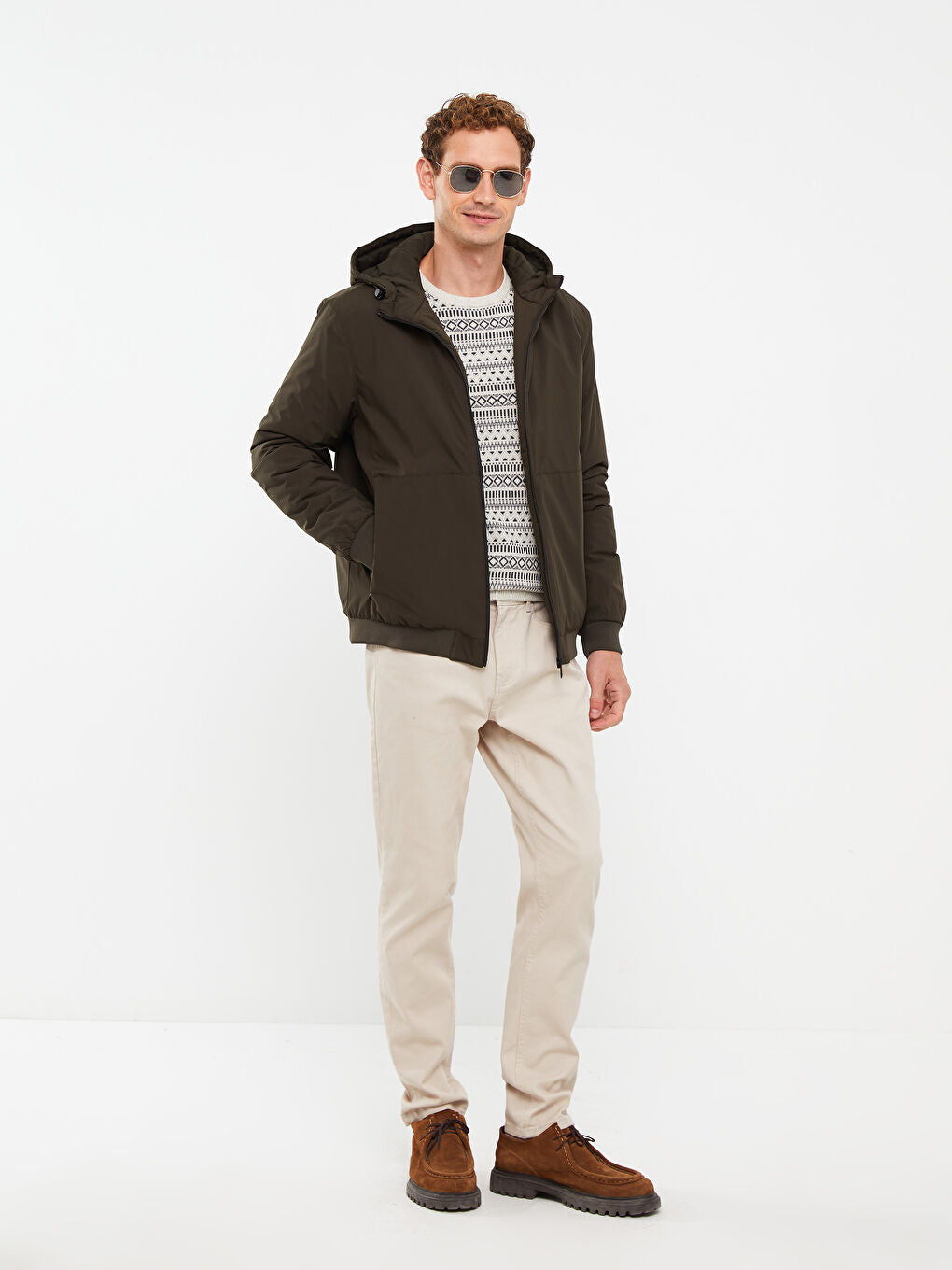 LCWAIKIKI Classic Khaki Standard Pattern Hooded Men's Coat