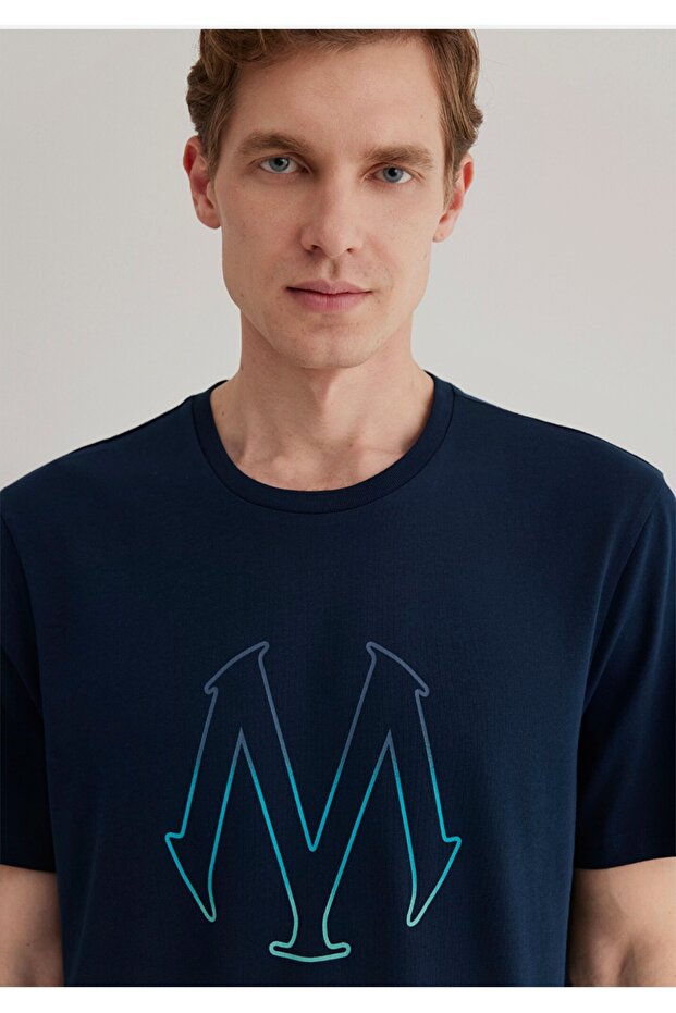 Logo Printed Navy T-Shirt Regular Fit/Regular Fit