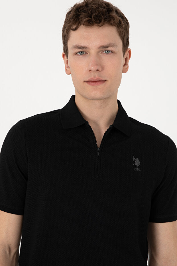 U.S. Polo Assn. - Men's Regular Fit Zipper Black Textured T-Shirt - M / Black / Regular