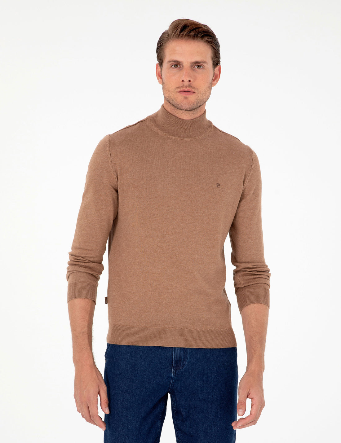 Camel Melange Slim Fit Half Turtleneck Basic Sweater