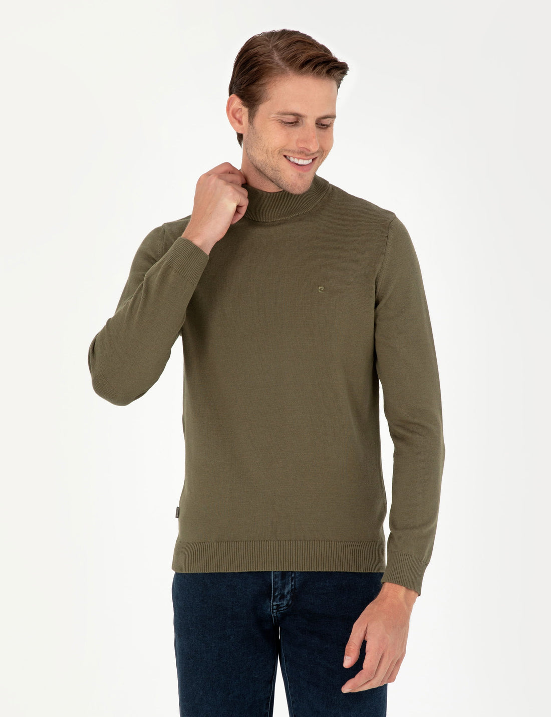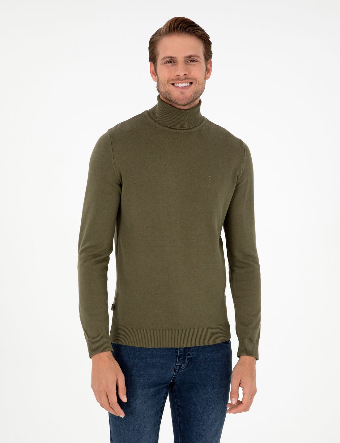 Dark Khaki Slim Fit Turtleneck Basic Knitwear Sweater