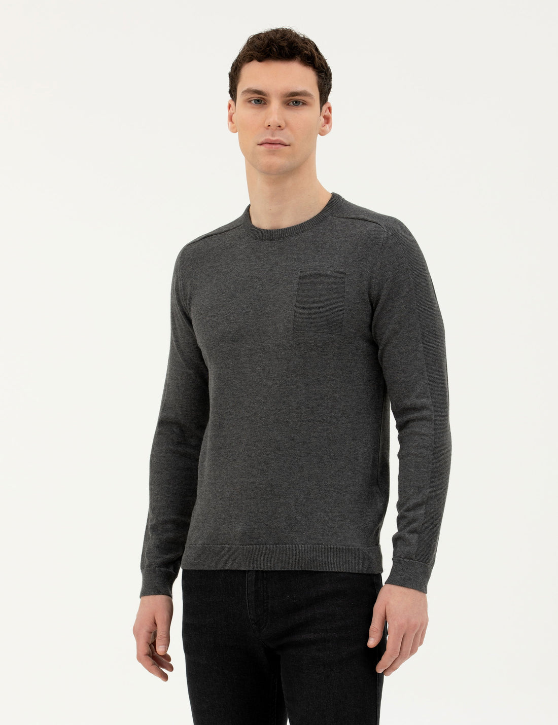 Dark Khaki Slim Fit Crew Neck Basic Sweater Sweater