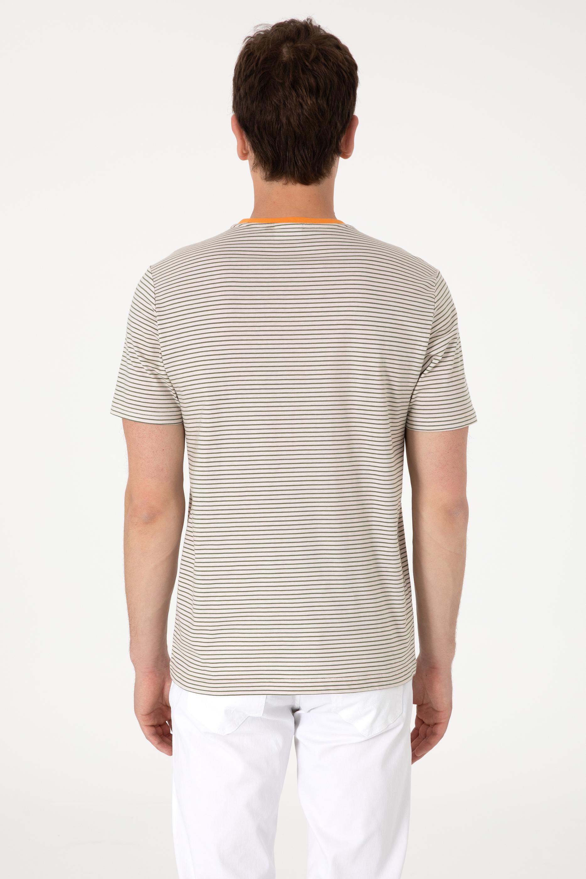 U.S. Polo Assn. - Men's Regular Fit Crew Neck Khaki Striped T-Shirt - 3XL / Green / Regular