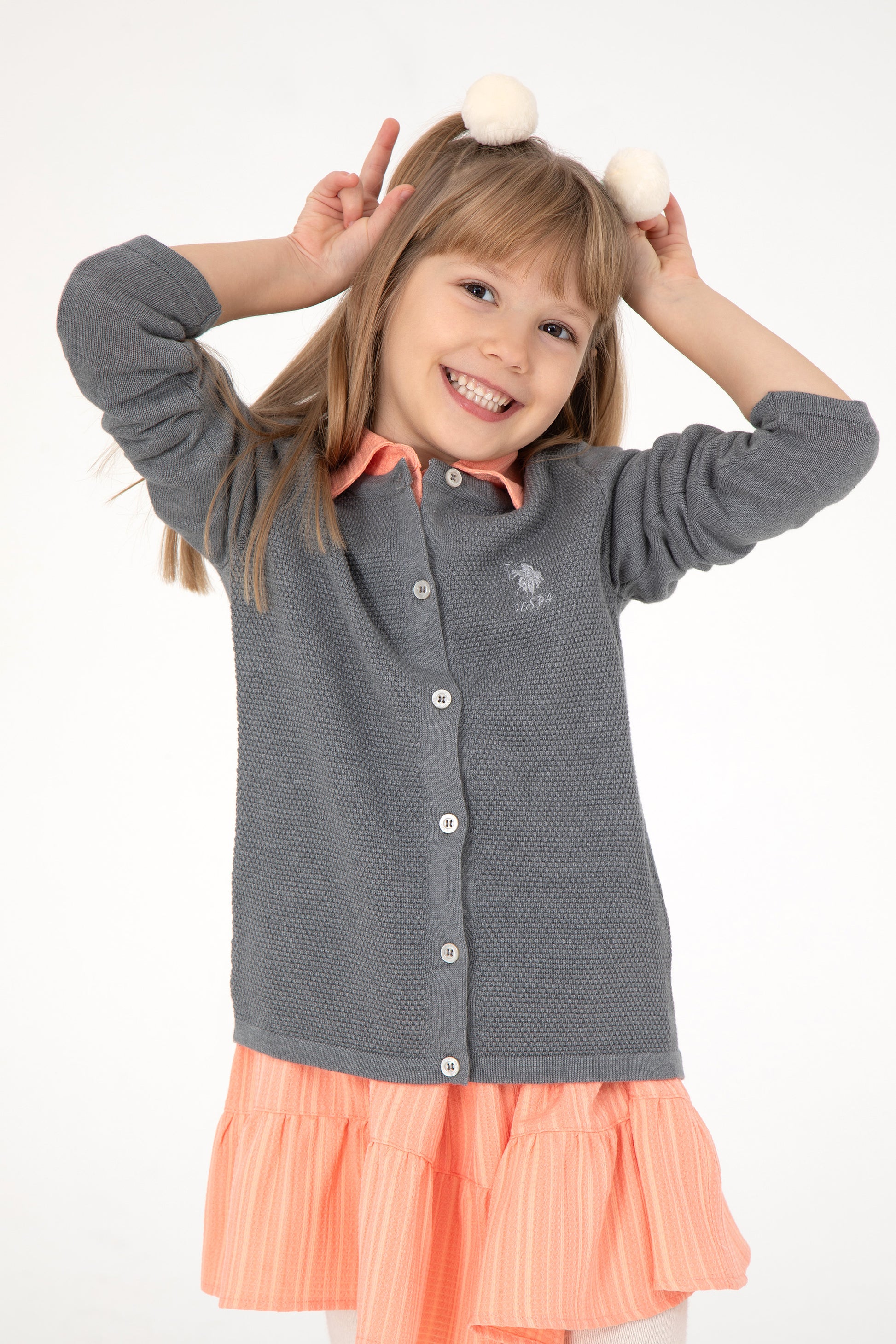 U.S. Polo Assn. - Girls' Grey Melange Knitwear Cardigan