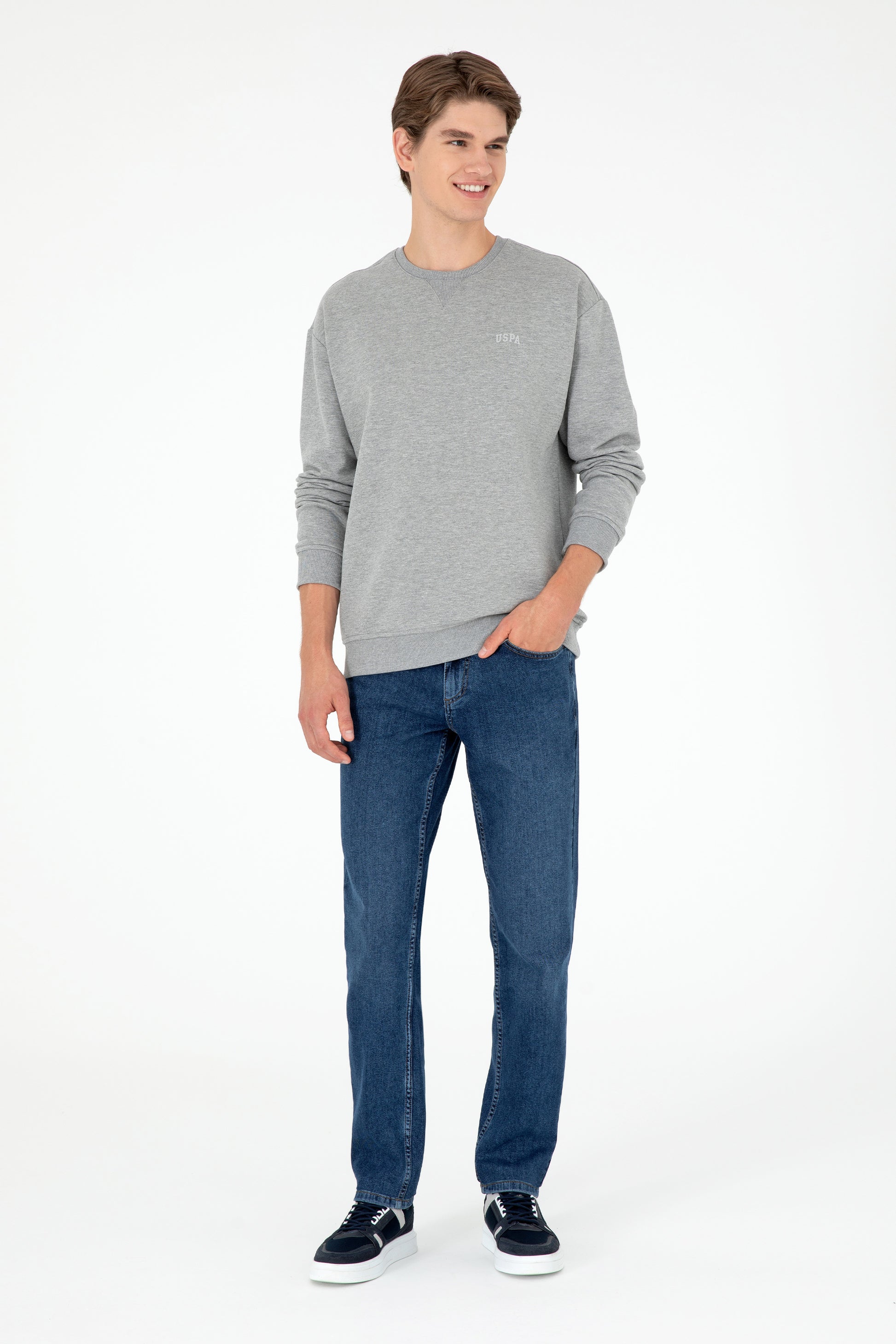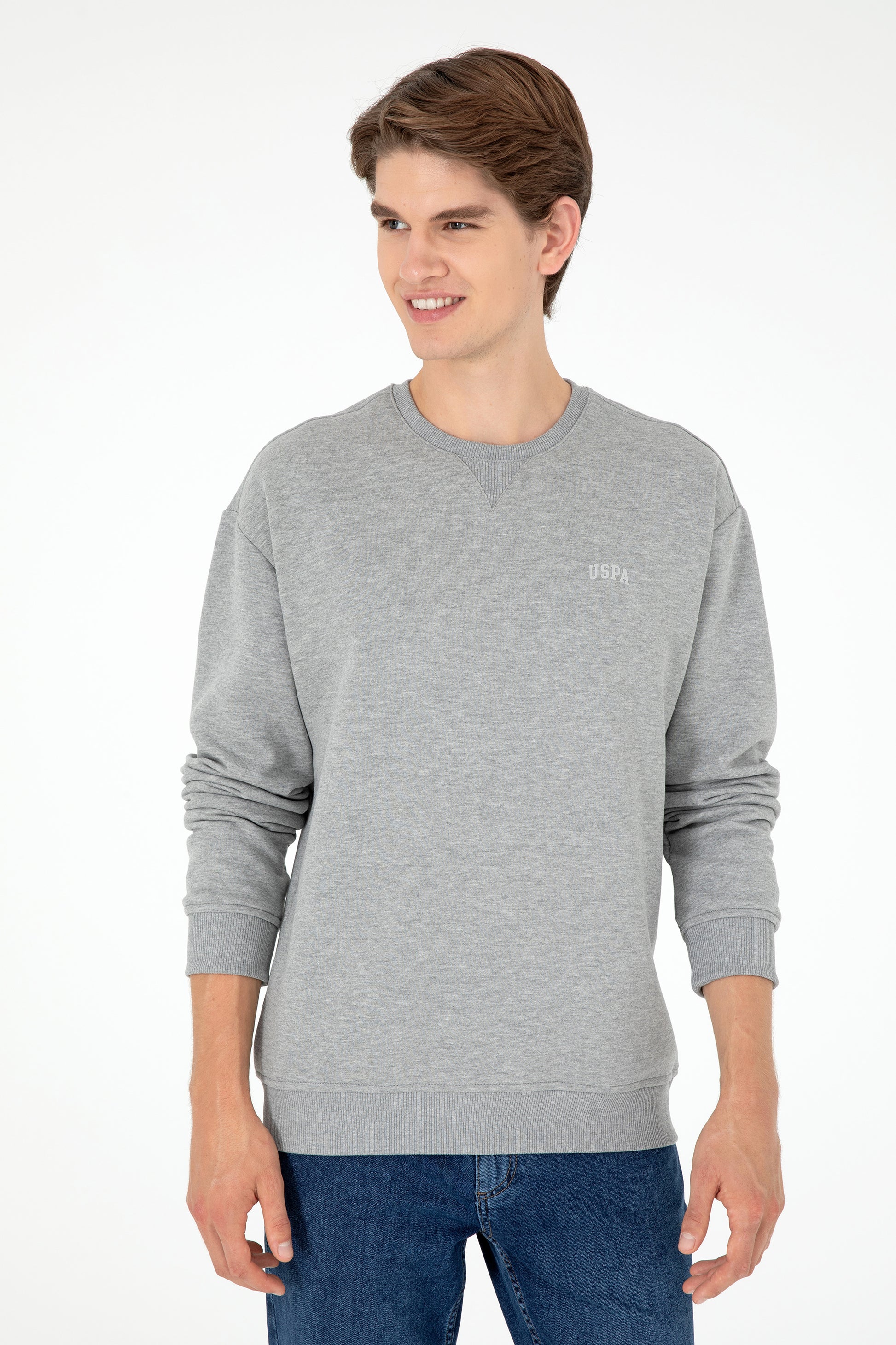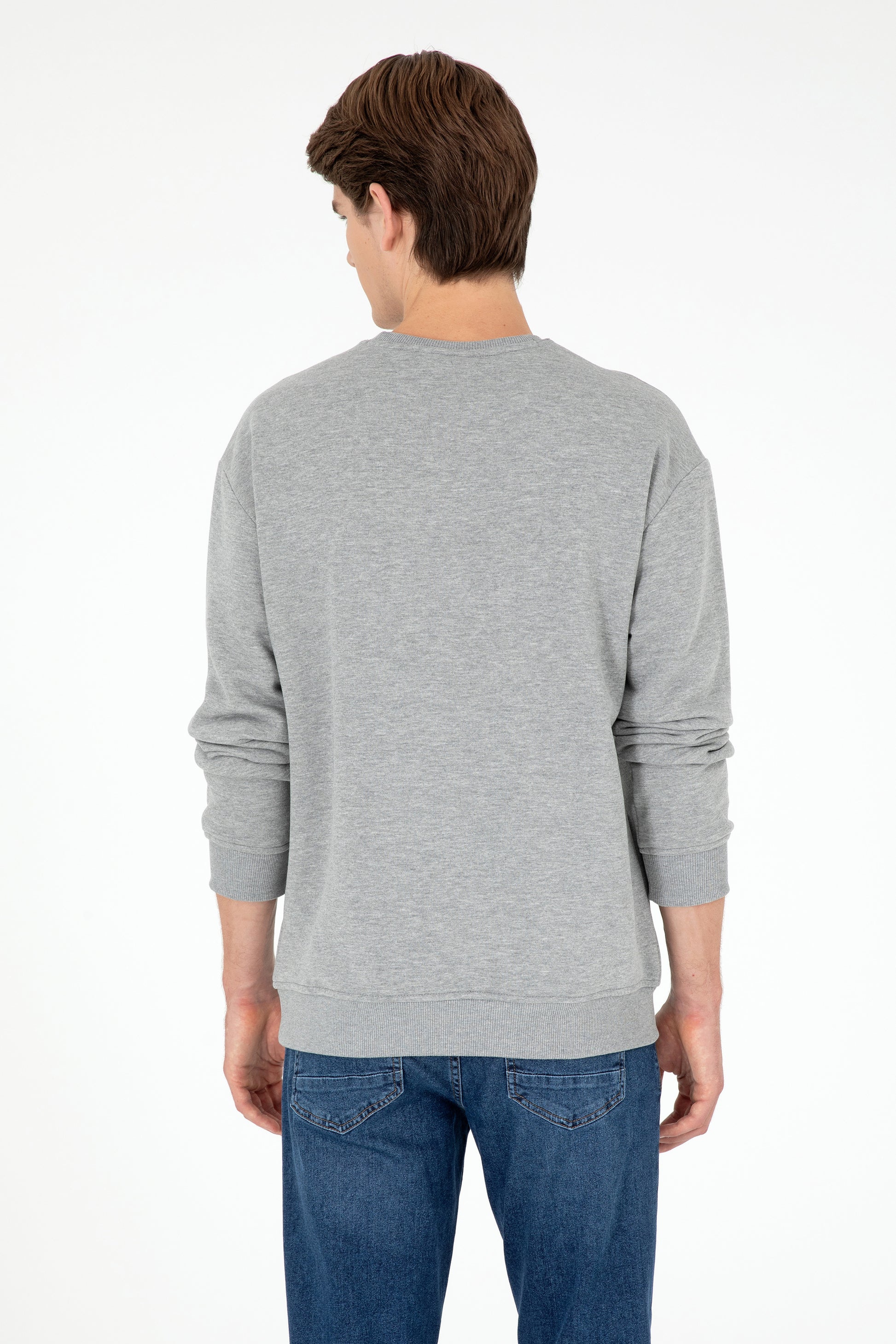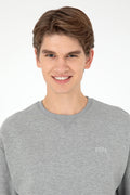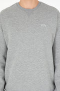 Comfort Fit Crew Neck Charcoal Grey Melange Basic Sweatshirt
